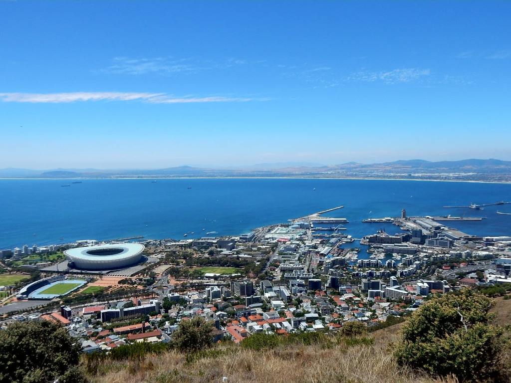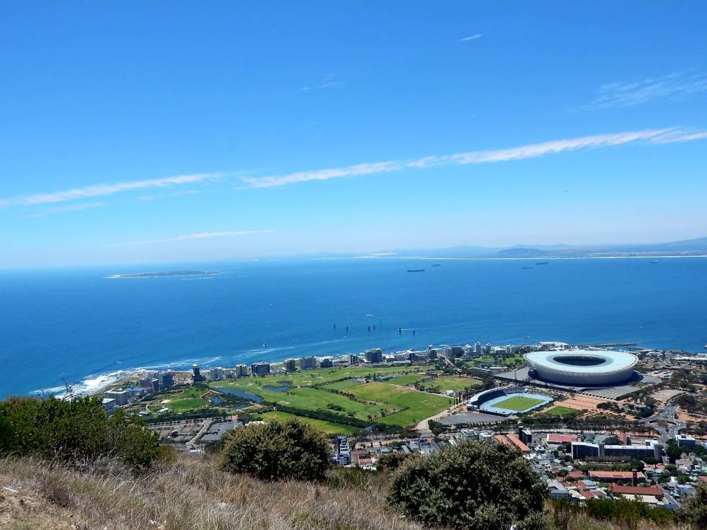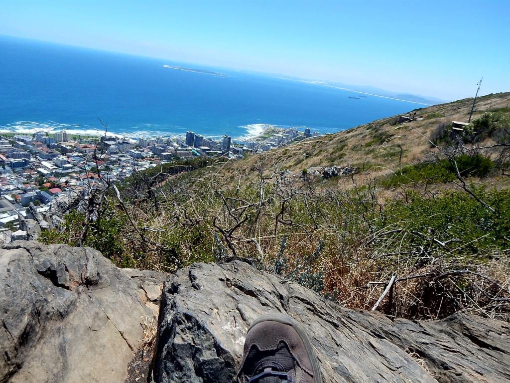 Irgendwas stimmt nicht mit mir- ich will heute mal (ganz freiwillig) wandern ?? Hä?? Ja, genau! Heute ist es nicht so extrem warm wie gestern (da hatten wir 28 °), das Wetter ist sonnig, also laufe ich los. Der Signal-Hill ist direkt hinter dem Haus der Gastfamilie, da will ich heute mal rauf! Mein Gastvater macht ein mürrisches Gesicht und meinte, dass sei ganz schön gefährlich, wenn ich alleine gehe. Er gibt mir den Rat, immer dort zu wandern, wo auch andere Leute sind. Okay, das verspreche ich (was soll mir schon passieren?) Es geht steil die Straße rauf- ein wenig wie in San Francisco. Es dauert nicht lang und ich versuche eine Abkürzung … keine gute Idee, weil ich in einer Müllkippe lande. Also zurück, da kommt mir schon ein älterer Mann entgegen und meinte, dass das sicher der falsche Weg sei und wo ich denn hin will. Ich erzähle es ihm, er zeigt mir den richtigen Weg und ich bin sichtlich beeindruckt, dass hier alle auf einen aufpassen. Alles klar – nur der richtige Weg ist erstmal ein schmaler Trampelpfad, der steil nach oben geht. Und dann sehe ich, wie mir zwei riesig große schwarze Hunde entgegen kommen. Die haben es sehr eilig – leichte Panik bei mir! Kein Herrchen weit und breit! Okay, der Pfad ist zu schmal, ich also ab ins Gebüsch. Sie stoppen kurz vor mir und bellen und knurren mich an – sie reichen bis zu meiner Hüfte! Keine Angst zeigen, den Blick nach unten und … sie passieren mich und ich bin total erleichtert! Erste gefährliche Begegnung gemeistert – plums, da fällt ein Stein von meinem Herzen. Okay, jetzt gibt’s hier keine Experimente mehr! Ein Stück vor mir sehe ich ein paar Leute und ich versuche in deren Nähe zu kommen. Sie machen Gott sei dank eine Pause und ich geselle mich dazu. Zwei Frauen, drei Kinder und ein Mann mit einer Dogge. Etwas verwundert fragen sie mich, ob ich ganz allein unterwegs bin. Als ich das bejahe, fragen sie, ob ich sie begleiten will? Ja, das kommt mir grade sehr gelegen und schon umkreist mich der Hund – diesmal allerdings hält der Mann die Leine fest. Er meinte, jetzt weiß der Hund, dass ich dazu gehöre. Plumps. Wir kommen ins quatschen, sie loben mein Englisch 😊 und ich erfahre dass die beiden Frauen Mutter und Tochter sind, die aus England kommen. Der Mann ist Südafrikaner und deshalb lebt die Familie schon 12 Jahre hier und die Oma ist auf Besuch da. Es läuft sich wesentlich leichter, wenn man jemanden zum quatschen hat. Kurz bevor wir oben sind, meldet eins der Kinder schreckliche Bauchschmerzen an und wir trennen uns wieder. Die Familie geht zurück. Die letzten Meter laufe ich allein, ein paar Mountainbiker kommen mir entgegen, sonst treffe ich keinen weiter. Oben ist viel los (man kann nämlich auch ganz bequem mit dem Auto hochfahren) und ich freue mich, dass ich ein Eis kaufen kann.