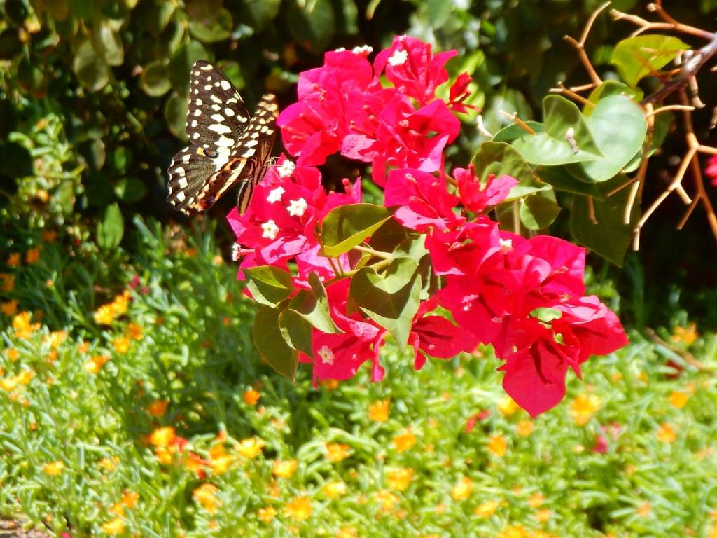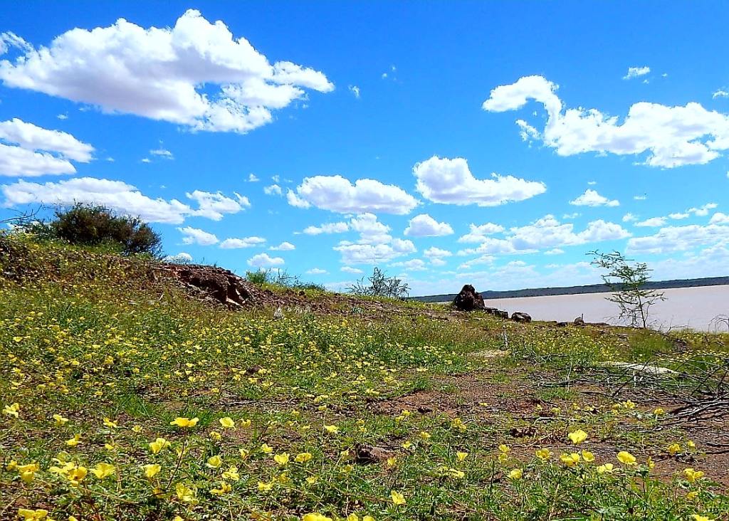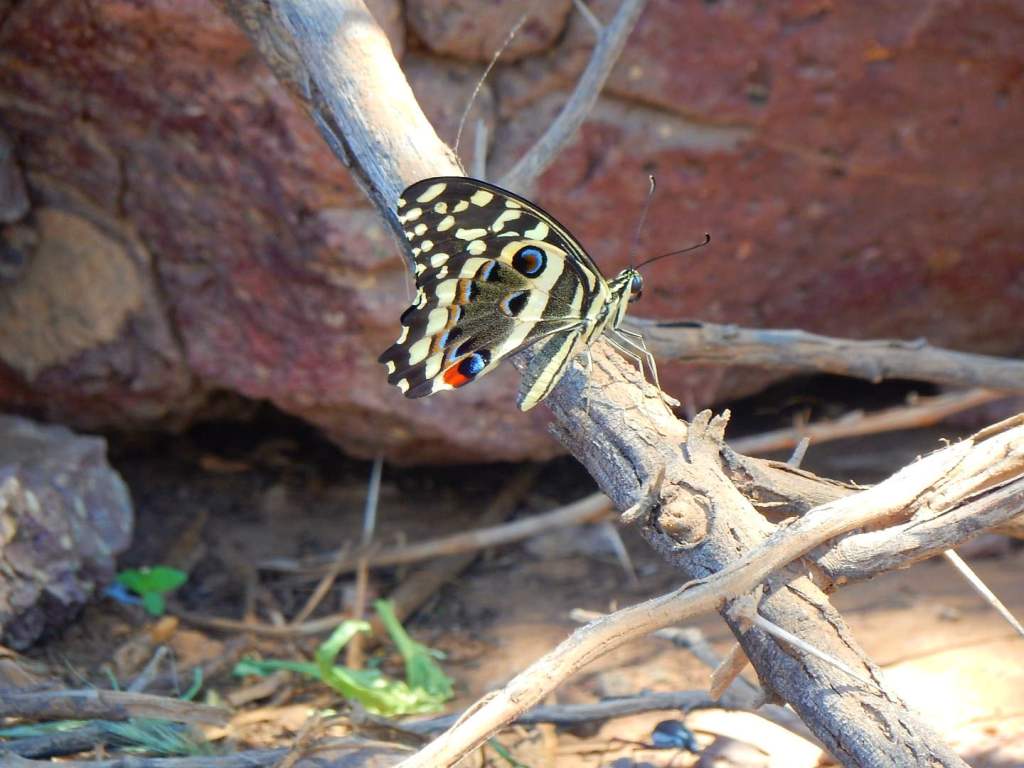 Wir verlassen Windhoek und fahren ca 300 km südwärts in die Kalahari. Eigentlich eine Wüste, neuerdings aber als Trockensavanne bezeichnet. Ist mir egal, für mich ist es eine Wüste. Und ich bin immer noch überrascht, dass es doch viel grüner als erwartet ist. Kurz vor Mariental liegt Namibias größtes Wasserreservat. Der Hardap-Damm staut das Wasser des Fish-Rivers (Fischflusses). Der Stausee ist eine mächtig braune Brühe, aber doch ziemlich gewaltig. Wir machen ein kleines Picknick, es ist klasse, wenn man den Kühlschrank immer dabei hat 😊. Hier blühen viele gelbe Blumen und es gibt richtig viele Schmetterlinge. Auf dem Weg zum Quartier sehen wir noch eine Horde Affen und später auch Strauße. Leider halten die nicht still und laufen vor uns weg, sodass ich sie nicht fotografieren kann. Das muss sich aber noch ändern, sonst kann ich euch ja gar keine schönen Fotos präsentieren. Ein Strauß läuft eine ganze Weile neben unserem Auto- wir fahren 40 km/h. Er hält da spielend mit!