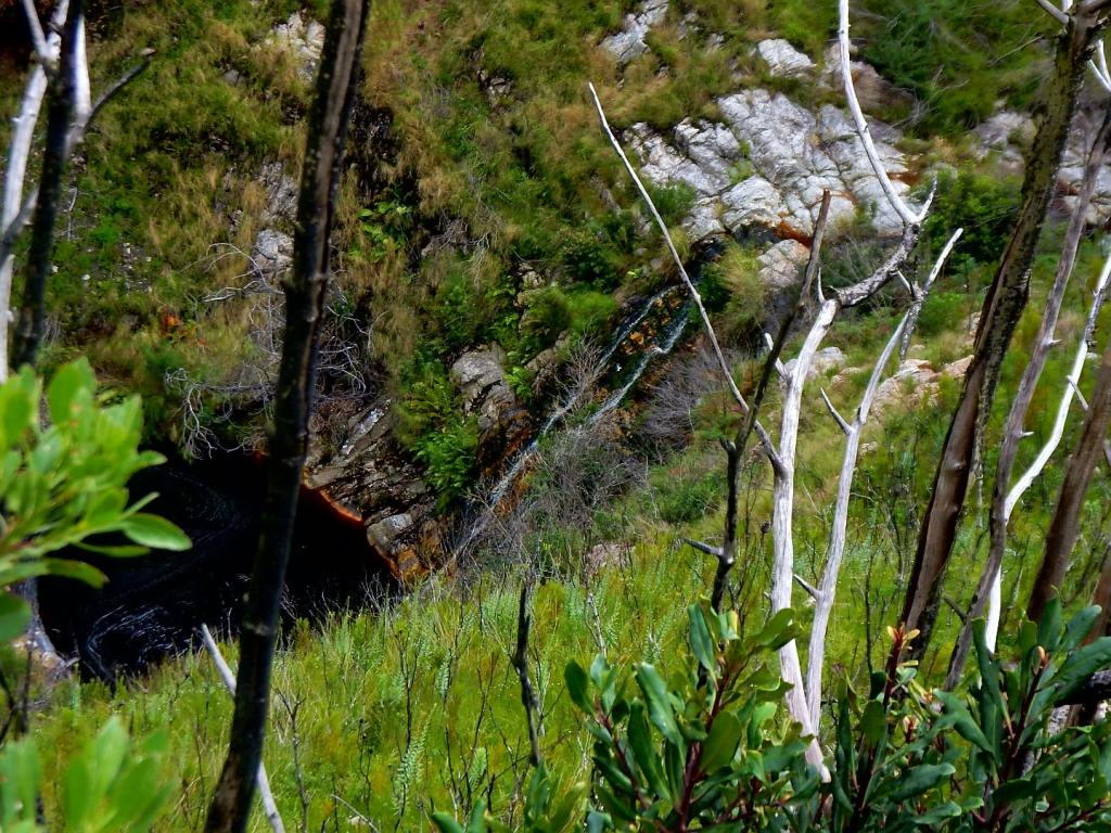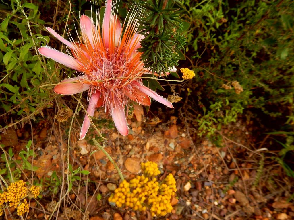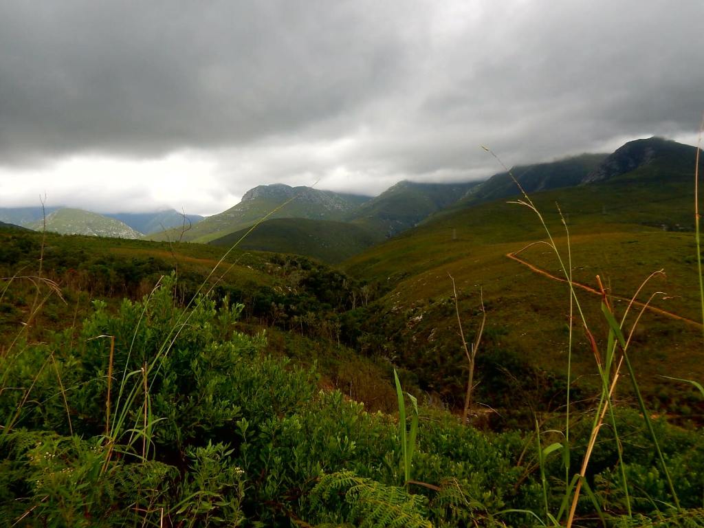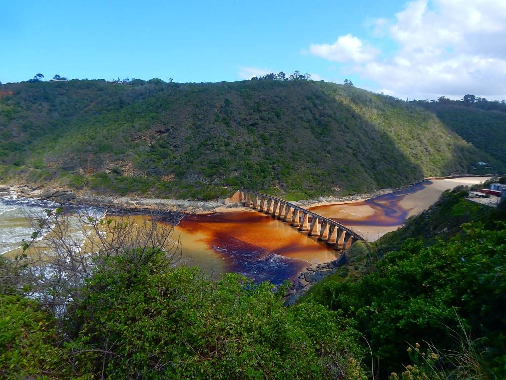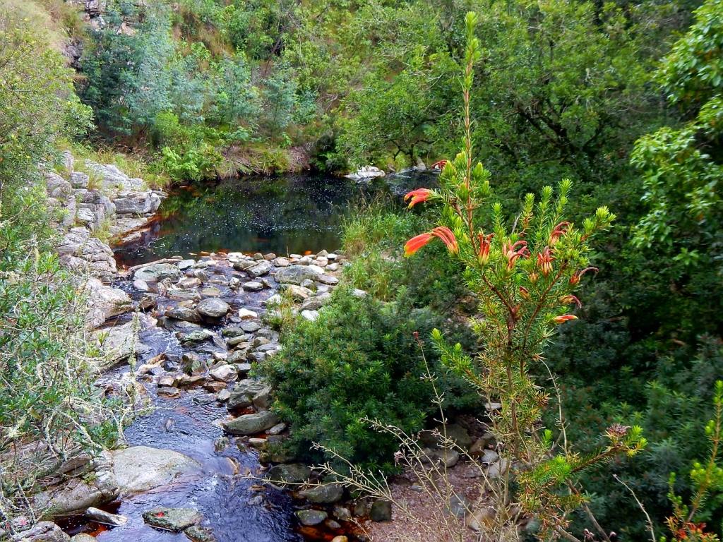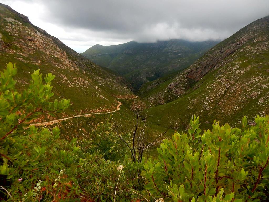 Ein wenig Wehmut klingt mit als wir Knysna in Richtung Oudtshoorn verlassen, weil es uns hier wirklich ausgezeichnet gefallen hat 😓. Wir wählen die 7-Pass-Route und werden nicht enttäuscht. Die Landschaft wandelt sich schnell und wir fahren auf Schotterstraßen durch die Berge … sehr langsam, weil wir ja jetzt keinen 4×4-Wagen mehr haben und uns die nötige Bodenfreiheit fehlt. Es sind tolle Aus- und Einblicke. Am Ende dieser Route stoppen wir nochmal an der Küste und genießen die Aussicht aufs Meer. Und weil wir noch Zeit haben, machen wir einen kleinen Abstecher nach Victorias Bay (aus gegebenem Anlass ) – und wir denken an die beiden 🙃😙. Dann zweigen wir wieder von der Schnellstraße ab und wählen den Weg über den Montagu-Pass. Volker hat ein wenig Bedenken, weil er gelesen hat, dass man hier besser mit 4×4 fährt und bei Nässe überhaupt nicht! Schisser! Ich kann ihn überreden und die Straße ist zwar schlecht und eng, aber da sind wir aus Namibia ganz anderes gewöhnt … alles geht gut und die Berge sind richtig toll … ein paar Blumen sind auch fotogen und so wird die Fahrt beeindruckend.