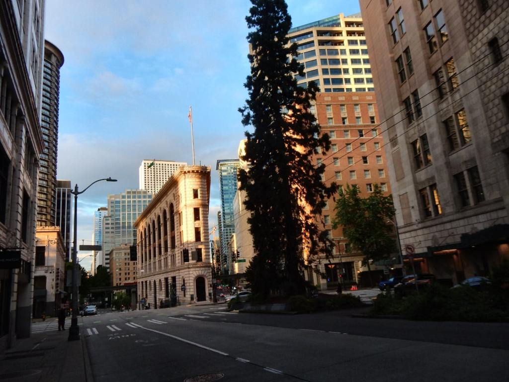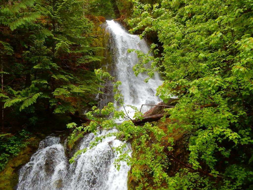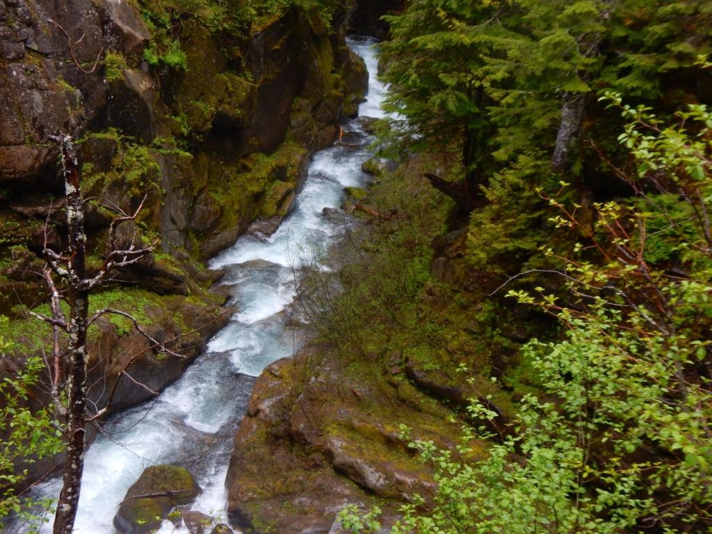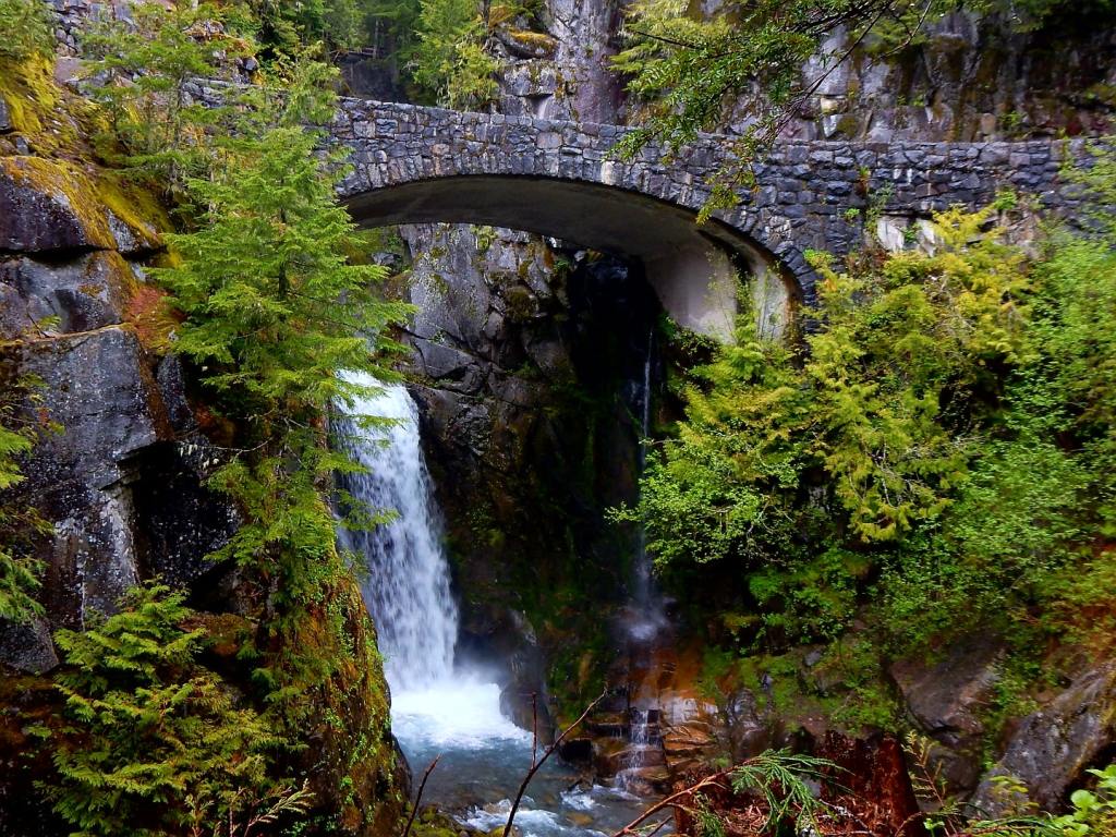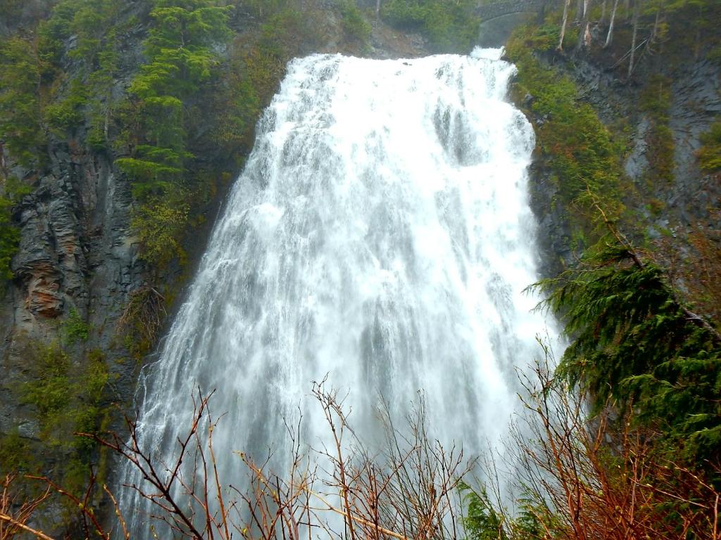Am nächsten Tag regnet es immer noch … neee, neee – so ham ‚mer nicht gewettet 😠. Nützt nichts, wir verlassen Portland weiter in Richtung Seattle – immer in der Hoffnung, dass der Regen aufhört und uns die Möglichkeit gibt, die umliegenden Berge zu sehen. Wir fahren extra in den Nationalpark Mt. Rainier – ein 4300 m hoher Berg mit vielen Gletschern! Aber es ist nichts zu wollen, die Wolken hängen zwar tief aber wir kommen nicht über die Wolkendecke drüber … zumindest nicht mit dem Auto (Flieger würde gehen🤣). Dann gibts eben keine schönen Bergfotos, sondern jede Menge Wasserfall-Fotos! So, die kann man auch bei Regen knipsen und bei einem müssen wir sogar ein wenig wandern … über Schnee! Mann ist das hier kalt 7 Grad! und schweineglatt. Ich klammere mich sicherheitshalber an Volker fest, nicht dass ich noch hinfalle! Wer hätte das gedacht, dass hier im Juni noch meterhoch der Schnee liegt! Aber so hab ich auch noch etwas Winterfeeling in diesem Jahr … hatte ich bisher ja noch nicht! Plötzlich läuft ein liebestrunkener Auerhahn auf die Straße und dann weiter übern Schnee … immer hinter seiner Dame des Herzens her … witzig der arme Kerl in voller Balzstellung und? Oh nein! Sie verschmäht ihn – also auch noch völlig für umsonst – da kommt dann doch ein wenig Mitleid auf! Jetzt geht’s für uns aber weiter nach Seattle und ? … es hört endlich auf zu regnen 😎. ENDLICH! Ich mache gleich mal etwas Stress und hetzte Volker zur Space Needle – dem Wahrzeichen von Seattle. Man weiß ja nicht, ob es am nächsten Tag vielleicht doch wieder regnet. Und weil ich so aufgeregt bin, sag ich statt Space Needle (spricht man Späs Niedel)- Spies Nädel. Das freut Volker so, dass er mich immer wieder damit aufzieht. Und wenn ich es dann richtig sage, verbessert er mich auf Spies Nädel 🤣, das gefällt ihm deutlich besser! Wir können von da oben wunderbar auf Seattle schauen, allerdings ist der Mt. Rainier immer noch hinter den Wolken versteckt. Abends bummeln wir noch zur ekligsten Sehenwürdigkeit – ever! Eine Wand voller angekatschter Kaugummis – ähhh da wird einem richtig schlecht! Da es auch am nächsten Tag nicht regnet, können wir uns in Ruhe die Stadt anschauen und finden sie beide richtig schön! Wir schlendern auch über den berühmten Pike Place Market mit seinen tollen Fisch-, Blumen- und Obstständen und kaufen mal wieder leckere Sachen beim Bäcker ein! Setzen uns in ein Café, besuchen Souvenierläden und wir haben sogar noch die Zeit ins Museum of Pop Culture (MoPOP) zu gehen. Der Eintrittspreis von über 30 Dollar lohnt sich für mich nicht wirklich, denn die Musiklegenden der Stadt wie Jimi Hendrix, Nirvana und Pearl Jam sind nicht so meine Welt. Und ob sich die Genannten als Popmusiker bezeichnen würden, mag ich mal zu bezweifeln 🤔. Wir fahren sogar noch an die Westseite des Lake Union, wo das Hausboot von Tom Hanks in „Schlaflos in Seattle“ lag. Da liegen immer noch solche Häuser im See, allerdings nicht mehr das aus dem Film.