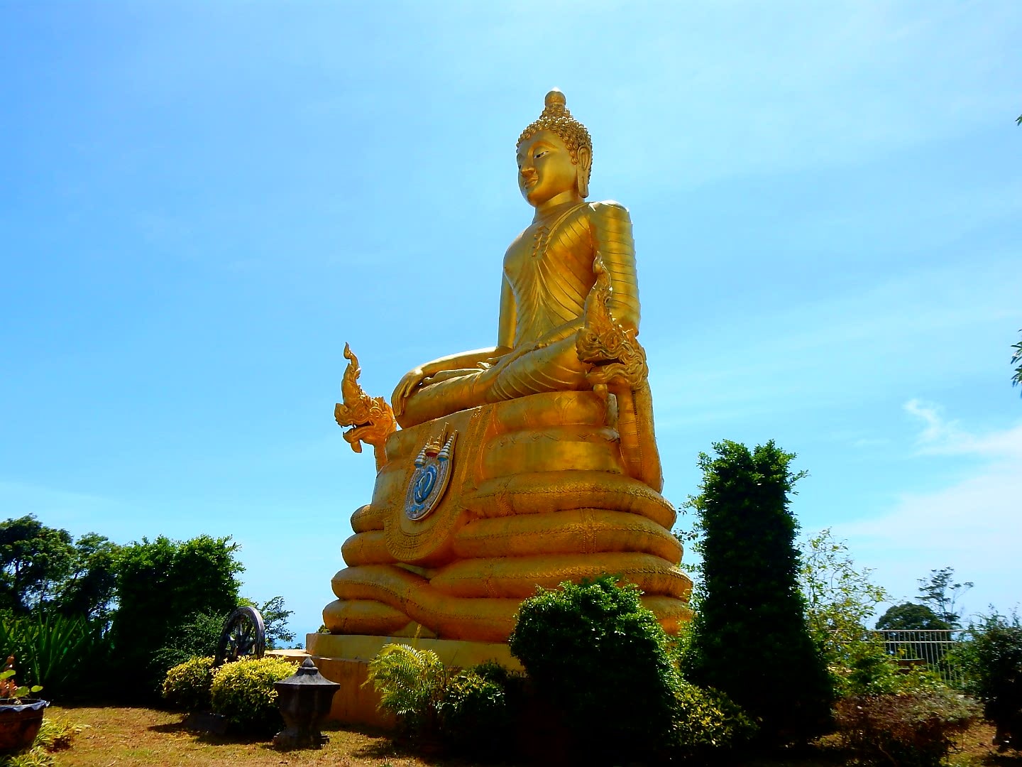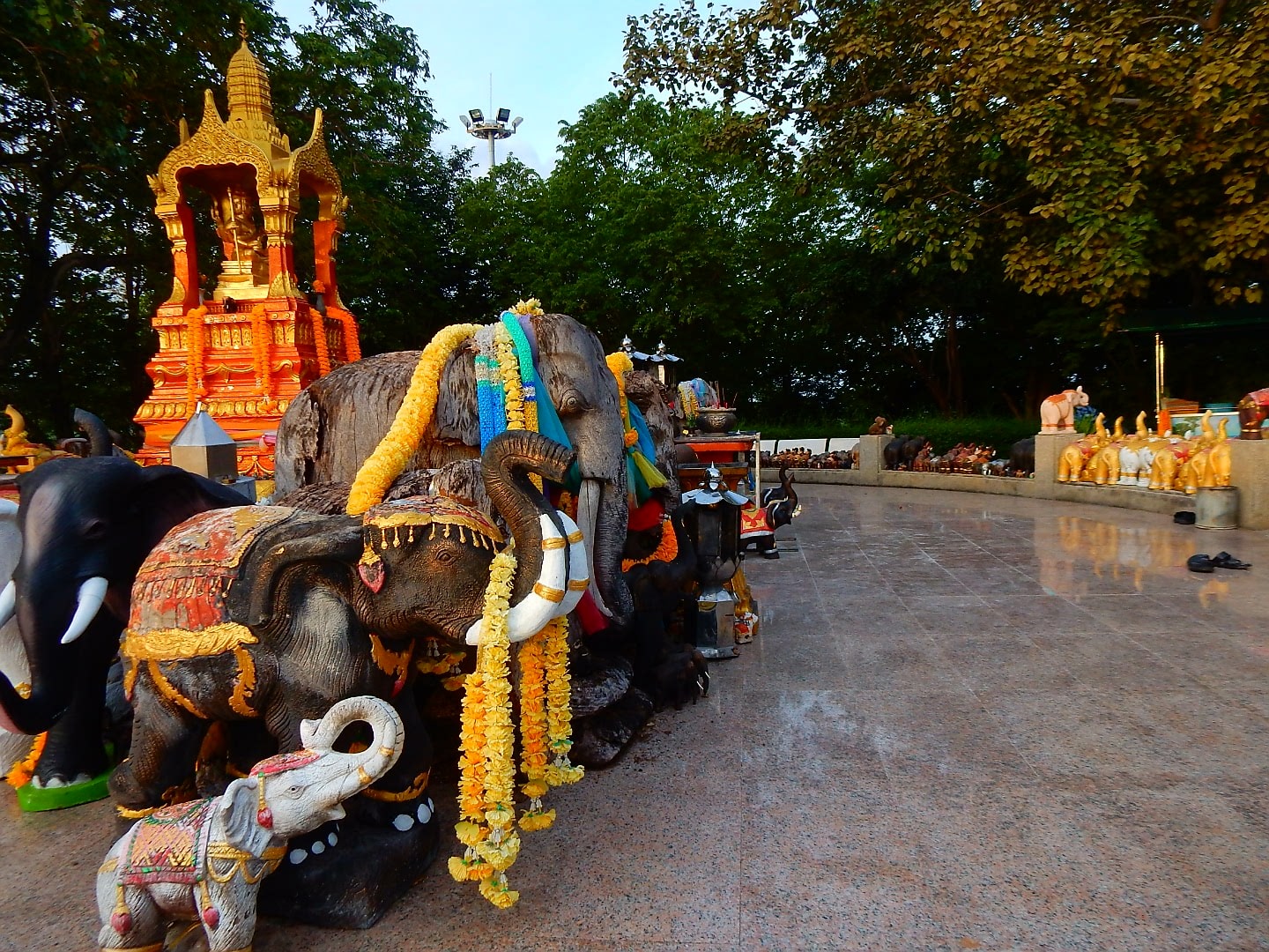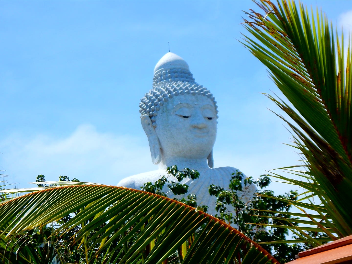 Am nächsten Tag miete ich einen Motorroller. Da ich schon lange nicht mehr gefahren bin, muss ich ein paar Proberunden auf dem Hof beim Verleiher fahren, aber gelernt ist gelernt und es klappt sofort wieder! Nun erkunde ich die Gegend und genieße die Sonne (puh- verdammt warm die 30 Grad hier😰) und würde gern ins Meer, aber da ist die rote Flagge gehisst (Badeverbot). Ok, dann fürs erste halt der Pool 🏊♀️. Das Hotel liegt zwar direkt am Meer (Ostküste von Phuket), aber das ist hier nur knöcheltief, schön anzusehen – aber schlecht zum Baden 😜 von Schwimmen ganz zu schweigen. Als ich einen Ausflug zum James-Bond-Felsen buchen will, wird mir erklärt, dass ich das erst nach der einen Woche darf, die ich auf Phuket bleiben muss. Der liegt nämlich in einer anderen Region. Aha! Dann schaue ich halt hier auf der Insel noch ein paar Tempel an, dann hab ich das schon mal weg😉 😆 und natürlich auch den riesigen Buddha (48 Meter hoch)! Und dann finde ich auch einen Strand (an der Südküste von Phuket) zum Baden und ohne rote Flagge, na bitte – geht doch🏖!