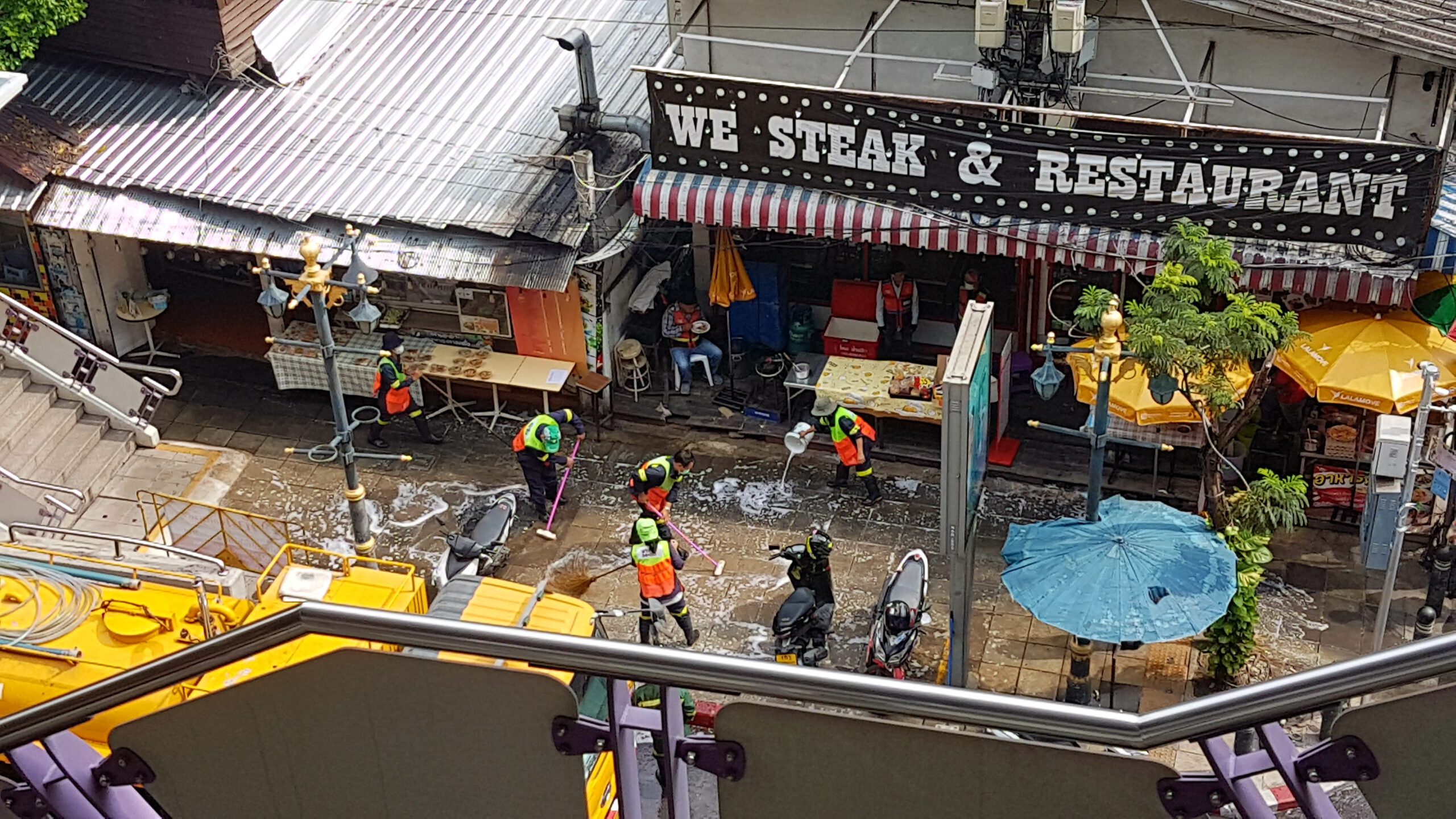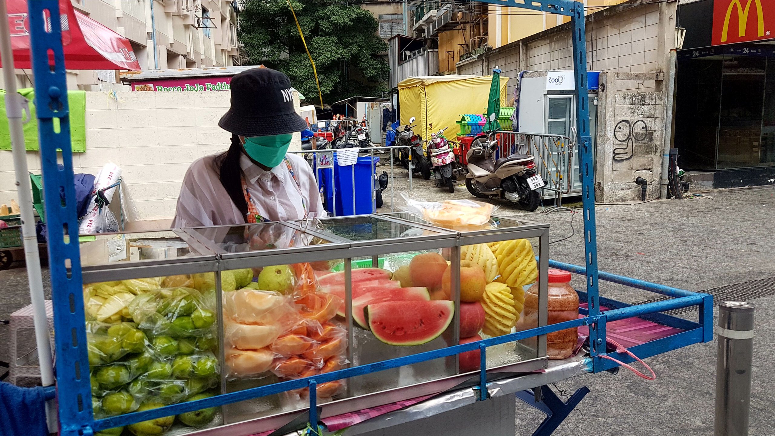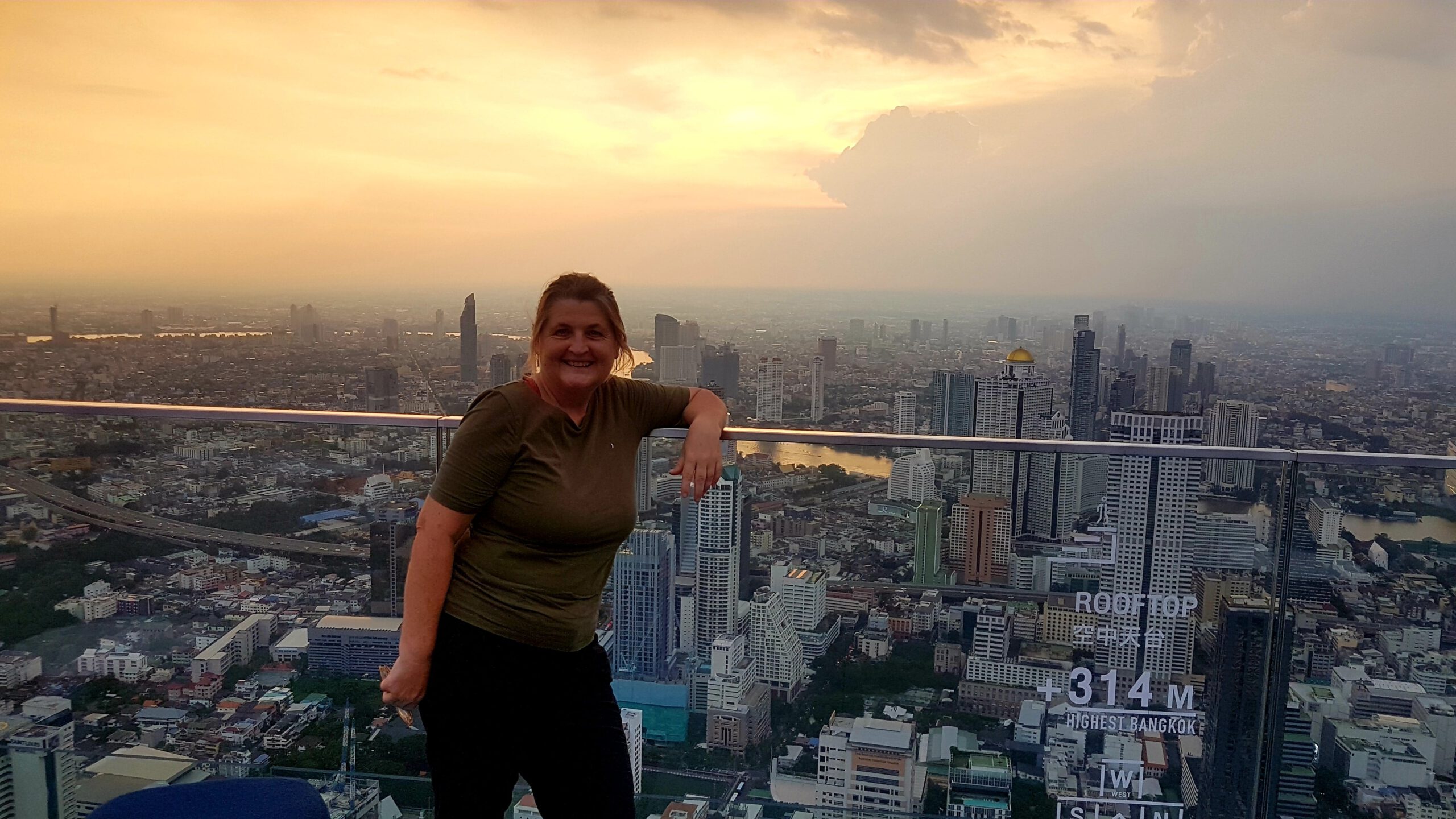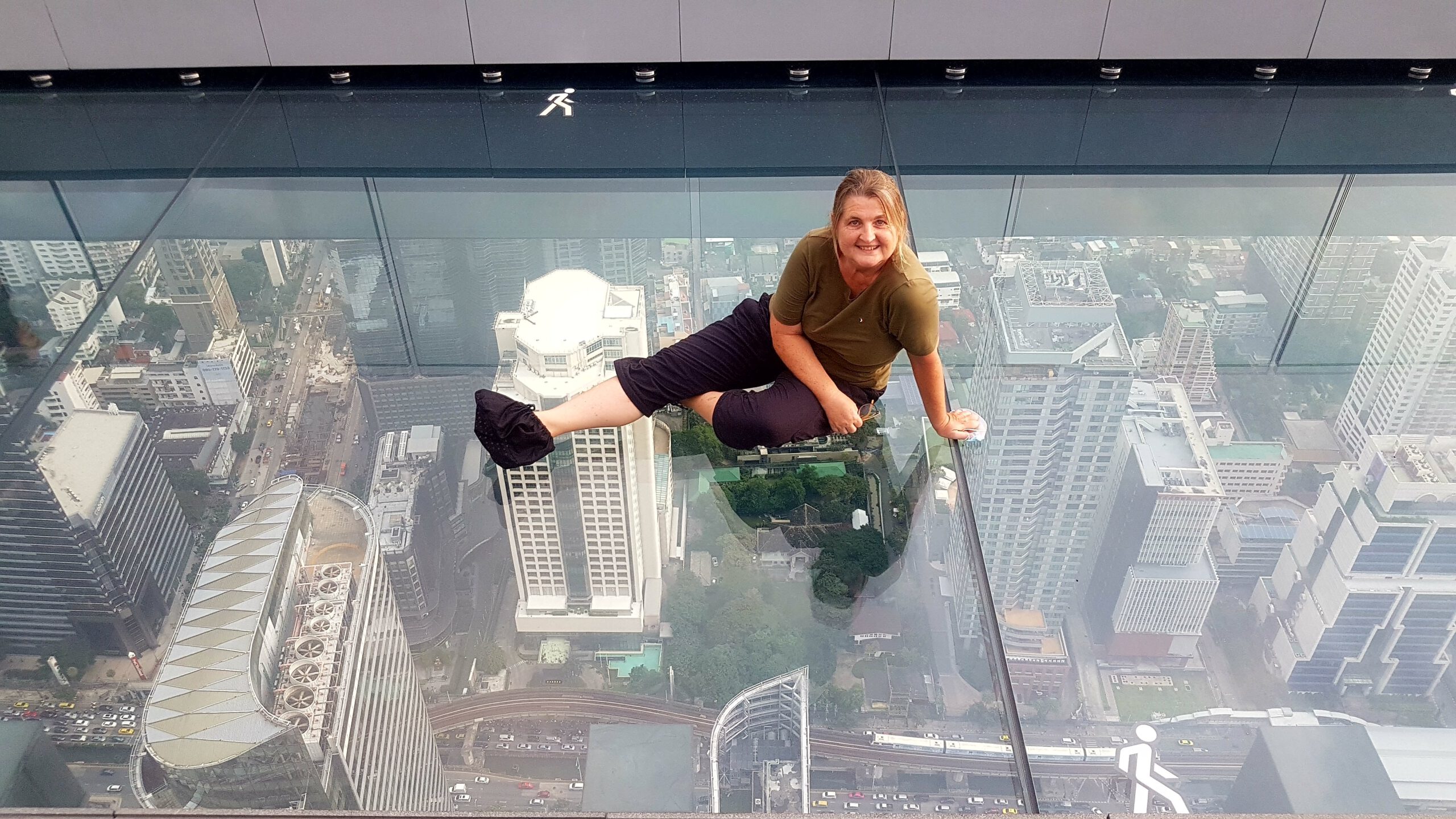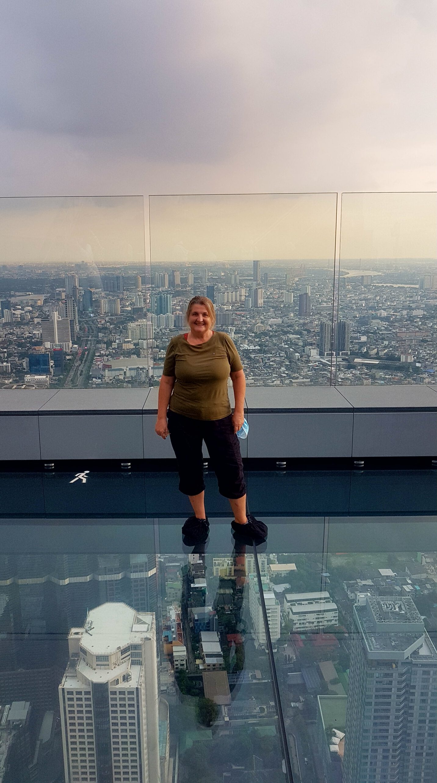 In Bangkok hab ich zum Hotel auch den Flughafenshuttle gleich dazu gebucht, nur der Fahrer setzt mich erstmal am falschen Hotel ab. Das merkt man aber erst, wenn beim Einchecken ein wildes hin und her geschieht, ich meine Buchung auf dem Handy vorzeige und dann klar ist, dass es den Hotelnamen zweimal gibt – nur halt in verschiedenen Stadtbezirken! Der Taxifahrer ist natürlich schon weg … aber da kenn ich kein Erbarmen! Ich hab ja richtig gebucht! Augenblicklich ruf ich wieder bei seiner Firma an und schwupps kommt er zurück und bringt mich im zweiten Anlauf dann auch ins richtige Hotel … es ist schon interessant, was einem so alles passiert … langweilig wird’s hier jedenfalls nicht! Mein sofortiger Besuch bei Nikon bringt mich schnell auf den Boden der Tatsachen zurück … die Kamera ist nicht zu reparieren … das Nachfolgemodell ist in der Filiale (die liegt im 45. Stock – schöner Ausblick 😀) nicht verfügbar … aber man bemüht sich und gibt mir per Email Bescheid! Na ja 😔 – unverrichteter Dinge trab ich enttäuscht ab und gönne mir zur Stimmungsaufhellung die Dachterrasse vom Mahanakhon (in 314m Höhe), dem zweithöchsten Gebäude Bangkoks. Traumhafter Ausblick – und die Fahrt im Fahrstuhl ein wahrer Genuss! Sehr, sehr empfehlenswert! Und weil der gläserne Skywalk gerade gesäubert wurde, darf ich am Folgetag nochmal hoch! Dann kommt der Teil mit dem Essen in einer Garküche, nicht lesbare Speisekarte usw. – das habt ihr ja alle schon im Whatsapp gelesen … ich hab übrigens Hühnchen mit Reis bestellt – und das war sehr lecker 😁. Den nächsten Tag hak ich mal ganz schnell als besonders doof gelaufen ab😲! Mann – es ist ja so frustrierend, wenn die Khao San Road komplett leer ist, man irgendwie keine anderen Traveller trifft, die Fahrpläne des Expressboots massiv eingekürzt wurden und man fast eine Stunde warten muss, bis eins fährt, die Nikon-Leute keine Kamera für mich besorgen können und der anschließende Einkaufsbummel im extrem leeren MBK-Kaufhaus (einige Etagen sind komplett leer!) auch keinen Kameraerwerb ergibt 😣… Jetzt zücke ich mein Re-Entry-Ticket (ein wahrer Joker🤡 nach so einem Tag) und fahre nochmal aufs Mahanakhon Hochhaus rauf! Diesmal ist der Skywalk offen, aber irgendwie hab ich grad Höhenangst? Ähm, das ist wirklich ein komisches Gefühl … langsam – gaaanz langsam gehe ich auf die Glasscheibe und lass mich vom freundlichen Personal fotografieren! So nämlich – Angst besiegt und dann jetzt doch irgendwie happy … ein ganz kleines bisschen 😎.