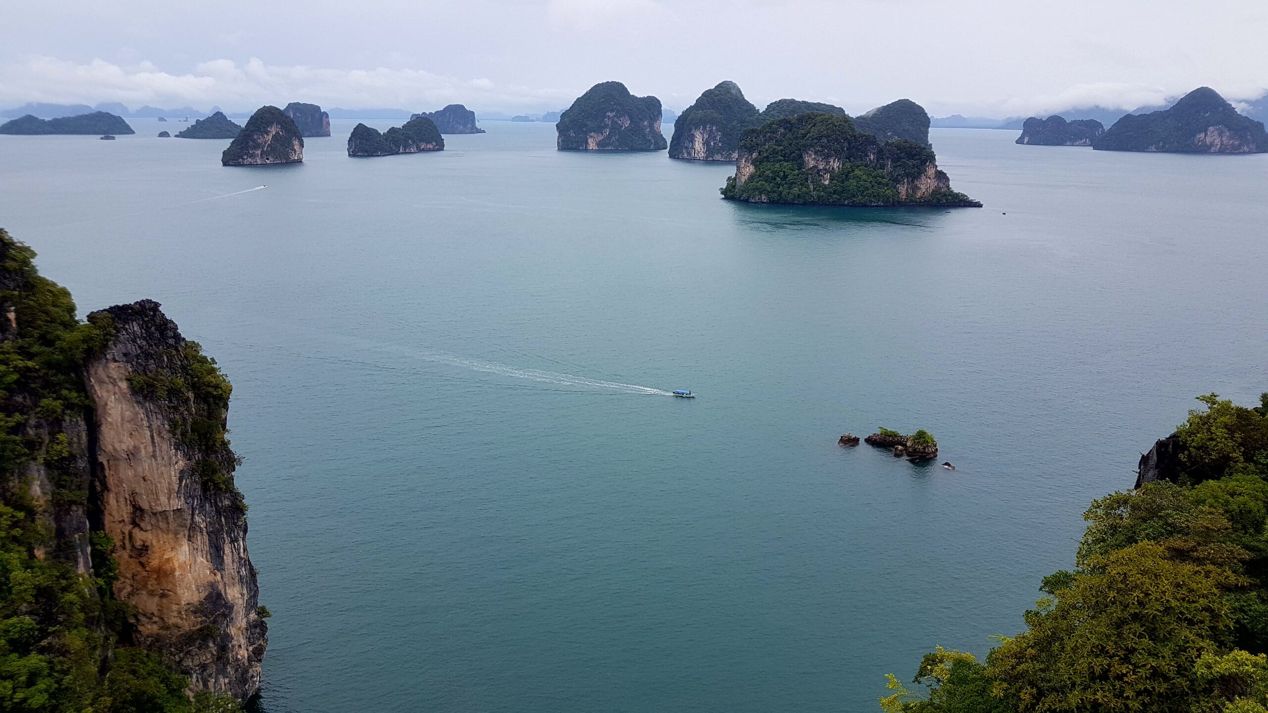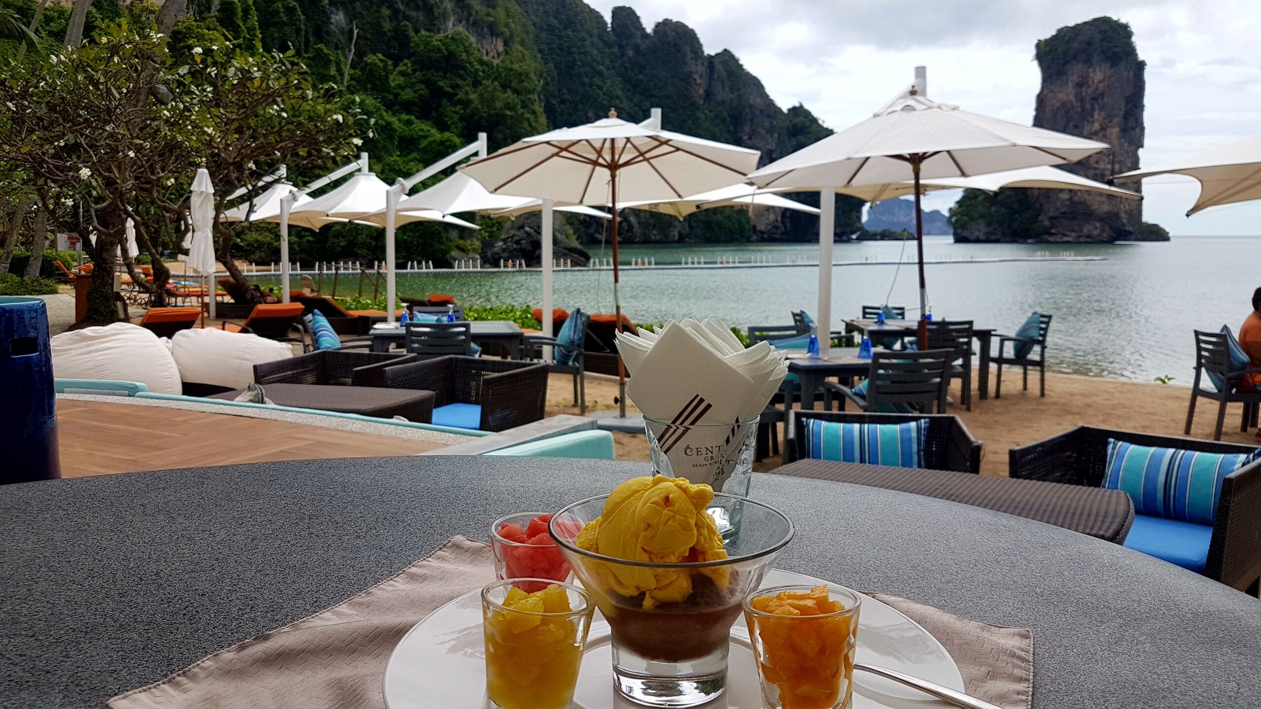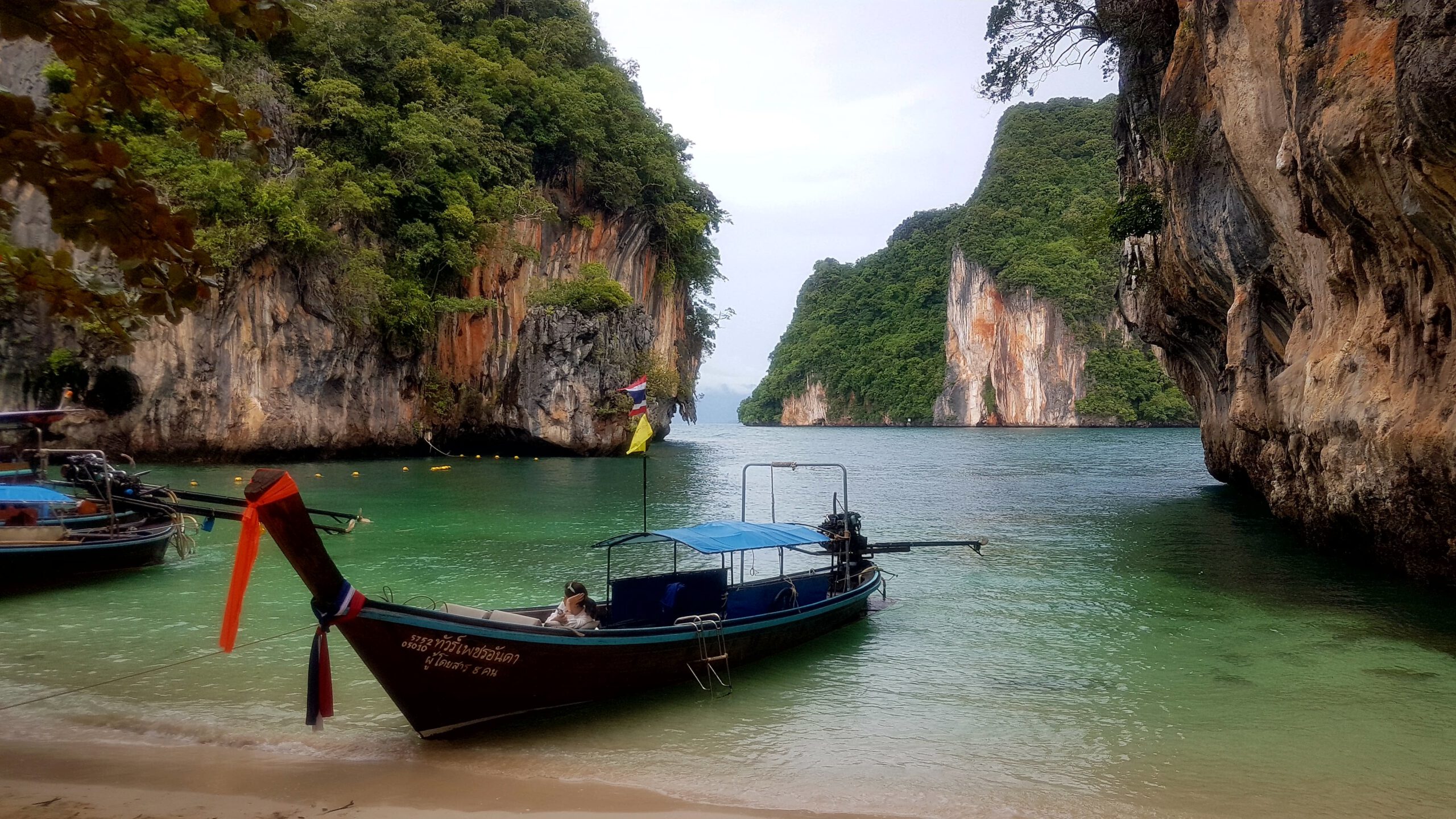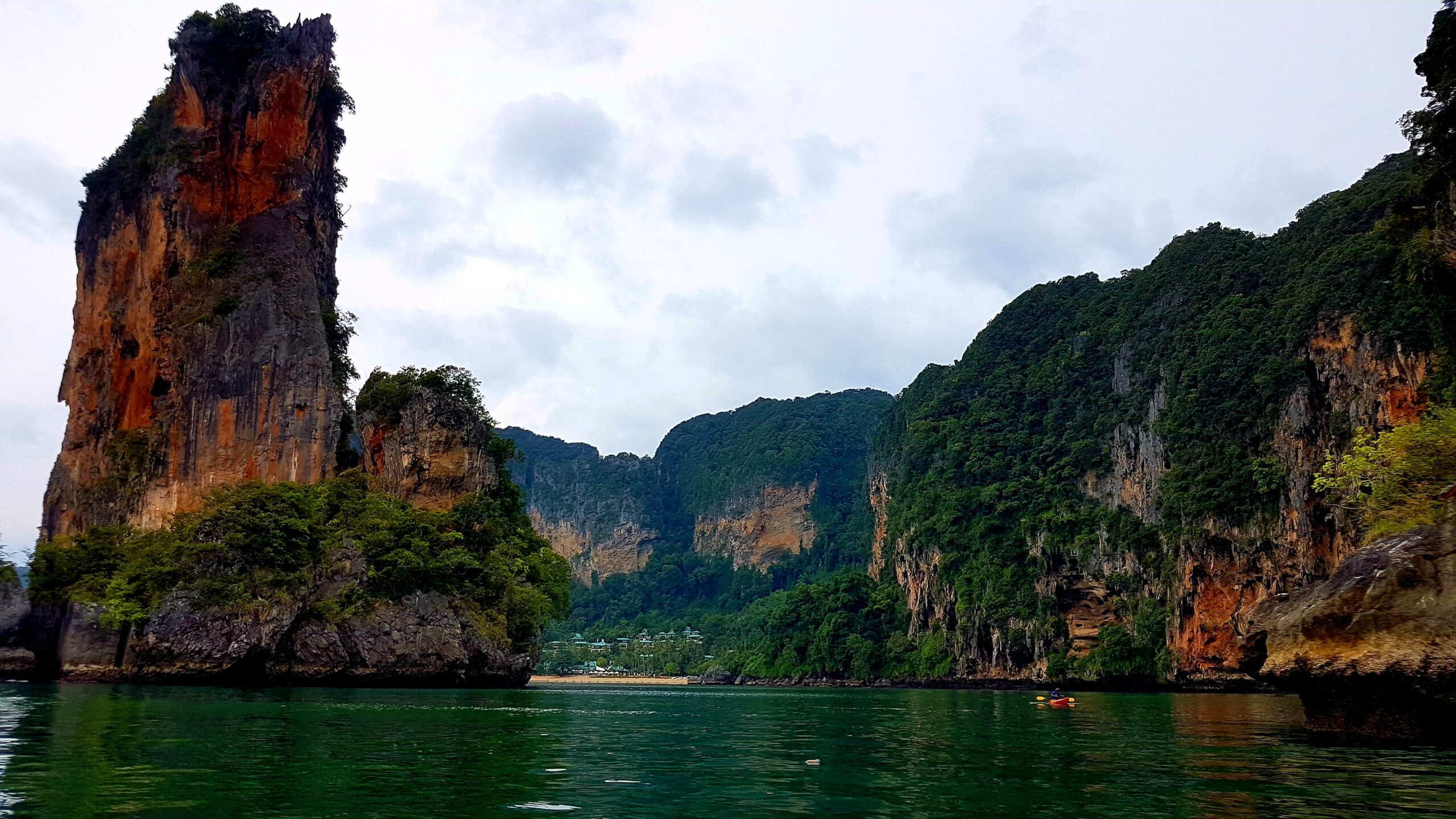 Nach den ganzen vielen Tempeln, Ruinen und Buddhas muss es jetzt mal wieder ein wenig Meer sein! Simone und Jörg verbringen ein paar Tage in Chiang Mai und ich fliege nach Krabi im südlichen Thailand zum Entspannen am Meer. Leider ist das Wetter nicht mehr sooo toll 🙊- was beklag ich mich denn? Es ist warm und meistens teils auch trocken nur die Sonne fehlt, weil es oft bedeckt ist. Das ist einerseits gut, weil man sich nicht verbrennt (schließlich hab ich ja keinen mit, der mir den Rücken eincremt 😔) aber anderseits, werden die Fotos mit Sonne einfach schöner 😣! Das hält mich aber nicht davon ab, auch hier ein paar Unternehmungen zu machen. Als erstes würde ich gern mit dem Boot nach Railay-Beach fahren – da hat es mir richtig gut gefallen! Jetzt ist es allerdings ein wenig anders als 🤔, ja wann war ich denn schon mal hier ? 2007 oder so? Naja egal- es ist schon eine ganze Weile her! Aktuell ist es jedenfalls so, dass ich nur eine Bootsfahrt kaufen kann, wenn mit mir noch weitere 7 Leute dahin wollen. Dann kostet die Fahrt 100 Baht (also 2,50 €). Wenn ich alleine fahren will, muss ich 800 Baht (also 20 €) bezahlen – aha😣! Aber die Dame vom Tourenschalter beruhigt mich und meinte, ich sei Nr. 7 – es fehlt also nur noch einer! Der kommt auch bald und so kann’s losgehen. Der Strand ist immer noch sehr schön, und das Wasser ist herrlich warm. Nur das Liegen im Sand ist auf die Dauer nichts mehr für meine alten Knochen. Die verfügbaren Liegen gehören ausschließlich den Hotelgästen und so wandere ich etwas umher, komme an der Abzweigung zum Viewpunkt vorbei und muss unweigerlich daran denken, wie wir dort hoch gekraxelt sind und bei strömendem Regen völlig verdreckt, aber gottseidank trotz glitschigem Weg und Seil, heil wieder runter! Das war ein einmaliges Abenteuer und wird auf keinen Fall wiederholt! Für Volker schieß ich ein Erinnerungsfoto! Dann hau ich mich nochmal in den Sand an diesem denkwürdigen Strand und nach ca. 2 h habe ich keine Lust mehr und würde gern zurück fahren. Nur jetzt brauch ich schon wieder 8 Leute! Es ist eher abtörnend, weil es noch weitere 2 h dauert, bis diese 8 Leute zusammen sind! Alle Versuche, die weiterhin ankommenden Boote zu überreden, mich mit zurück zunehmen, scheitern – sie fahren lieber leer zurück als den Preis zu senken – und mein Frustlevel steigt! Das ist meine erste und letzte Fahrt an diesen Strand! Am nächsten Tag wandere ich über den Monkey-Trail (nur ca. 20 Min) zum Pai Plong Beach. Ein toller Strand- rotzfrech lege ich mich auf eine Liege (die schon wieder zu einem Hotel gehört, aber mich vertreibt hier keiner) und leiste mir noch einen tollen Eisbecher! Auf dem Rückweg kommt tatsächlich auf dem Monkey-Trail eine Horde Affen vorbei und ich hole schnell mein Handy aus dem Rucksack. Leider versäume ich in der Hektik den Reißverschluss komplett zu schließen und das sieht einer der Affen und springt mir an den Rucksack und öffnet ihn rotzfrech. Ich schreie ihn an und er zeigt mir seine Zähne und trollt sich mit der rausgefallenen Wasserflasche! So ein Schlingel🐒! Ich erkunde bei einer Boots- und Schnorcheltour am nächsten Tag die herrliche Inselwelt der Umgebung. Leider wettertechnisch schon wieder suboptimal, aber das lässt sich halt nicht ändern. Bei schönem Wetter wäre das hier geradezu paradiesisch- so ist es eben einfach nur schön 😊🙃!